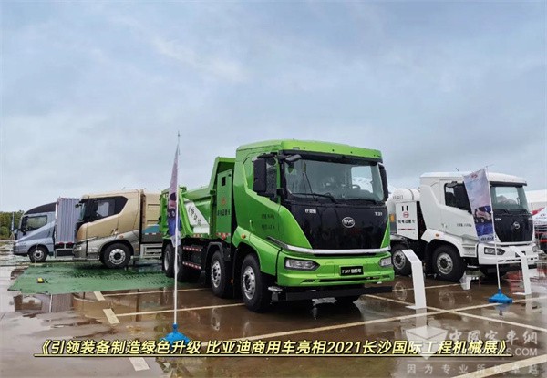 5月19日,2021长沙国际工程机械展览会在长沙国际会展中心隆重启幕。比亚迪携旗下纯电动智能自卸车T31、纯电动混凝土搅拌车T31、纯电动牵引车Q3、纯电动洗扫车T8F和纯电动物流车T5D亮相会场,向四方来宾展示比亚迪领先新能源技术与成果,以绿色理念、优质产品助推工程机械产业生态健康快速发展。