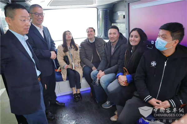 费尔南多·卢格里斯大使一行先后参观金龙客车品牌及文化展厅,了解金龙客车发展历程及品牌文化,试乘、体验金龙自动驾驶和新能源系列产品,现场为金龙客车点赞并给予极高的评价。