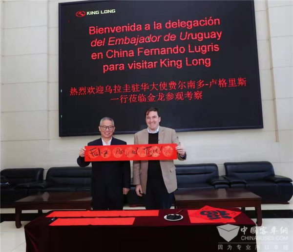 乌拉圭驻华大使费尔南多·卢格里斯表示:金龙客车是一家拥有先进技术和实力的汽车企业,特别是在新能源汽车领域和自动驾驶上实力雄厚,给我们留下了深刻的印象。希望与金龙客车加深沟通交流,围绕清洁能源领域深化合作,推动项目落地,实现合作共赢。