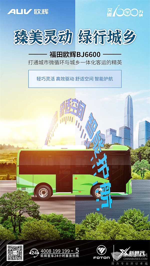 新时代,城市因交通而兴,无论是城交通微循环系统,还是城乡一体化客运服务水平,都成为城市新名片。需求变化必定激发积极的市场活力,福田欧辉BJ6600就是一款全面凝结时代特色的产品,开启城乡出行的绿色时代。