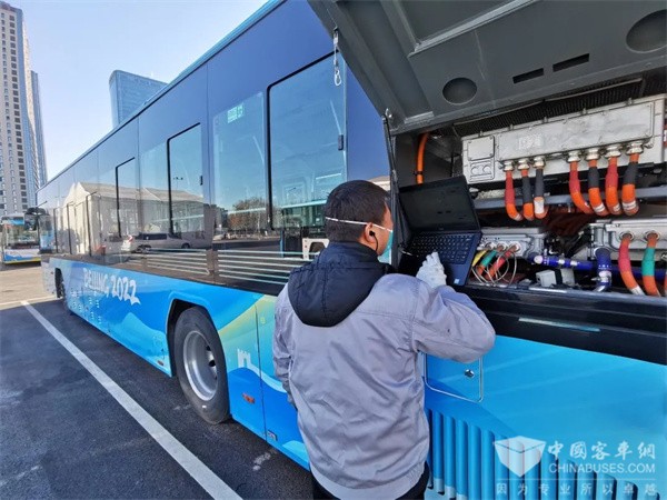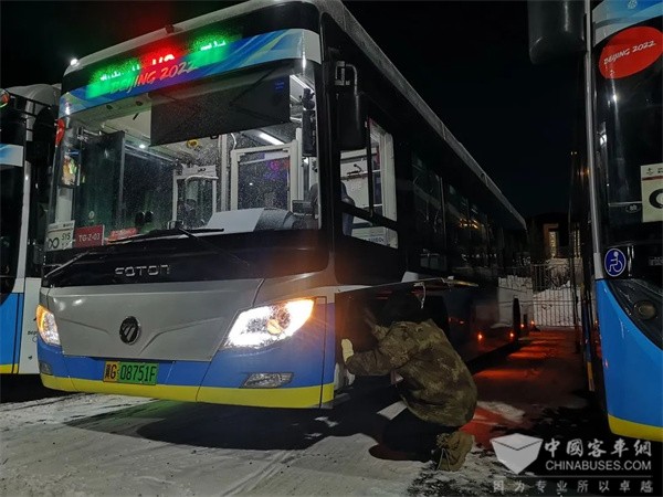 秉承着严检查、多测试、重培训、深联动的“十二字诀”, 欧辉服务团队周密开展运营车辆的保障工作,严格执行车辆每日三检程序,包括车辆外观、底盘、操控系统等,确保保障体系无疏漏。即使在滴水成冰的深冬寒夜里,团队都以当好冬奥东道主的精神,坚守在工作一线。