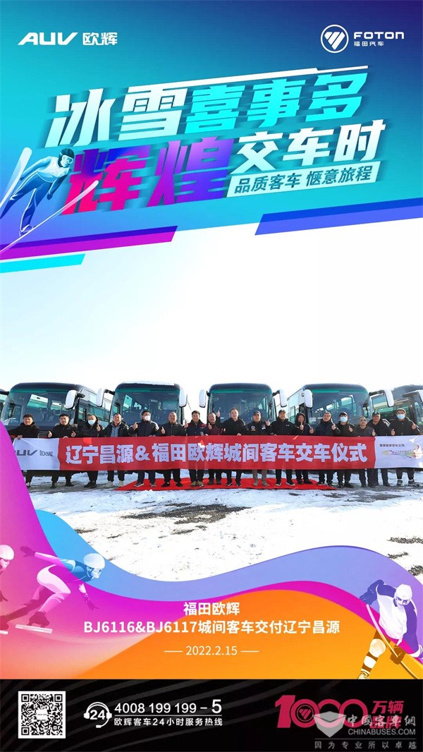 冬奥冰雪盛宴,中国健儿战绩亮眼,可谓“金喜连连”。奥运健儿虎虎生威,福田欧辉交车不断。元宵佳节之际,批量欧辉城间客车交付辽宁昌源旅游汽车股份有限公司(以下简称“辽宁昌源”),用于其全资子公司——本溪昌源旅游汽车有限公司的旅客运输业务,助力辽宁旅游市场蓬勃发展。