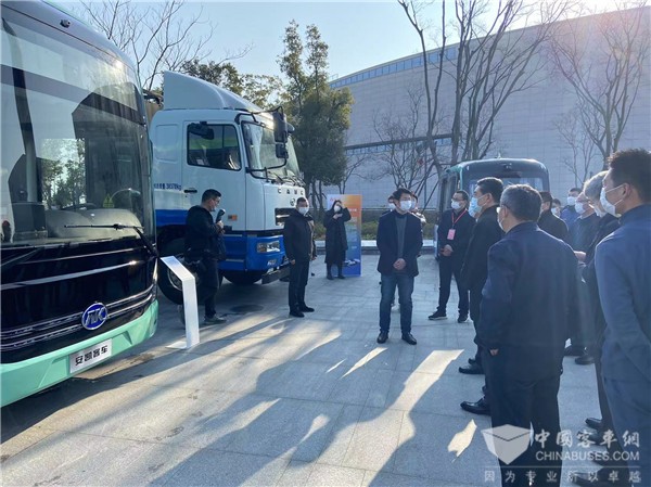 现场,动感时尚、美观大气的安凯氢燃料客车吸引了一众参会省市领导的极大关注。