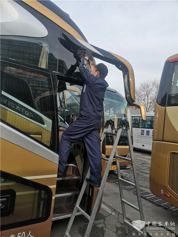 金旅服务团队对车辆展开细致检查,备战2022全国两会