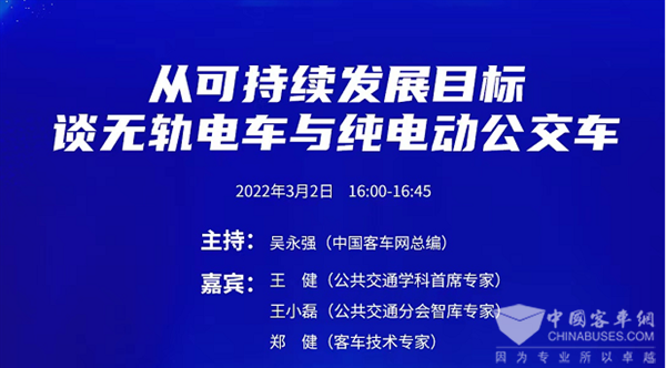 双碳目标下,现在以及未来公交行业能做什么?是目前业界比较关注的话题。近日,中国完美作业网有免费视频总编吴永强邀请到公共交通学科首席专家王健、中国土木工程学会城市公共交通分会智库专家王小磊和客车领域专家、武汉客车新能源科技有限公司总经理郑健,三位专家从联合国可持续发展目标,一起探讨中国的无轨电车和纯电动公交车的利弊。