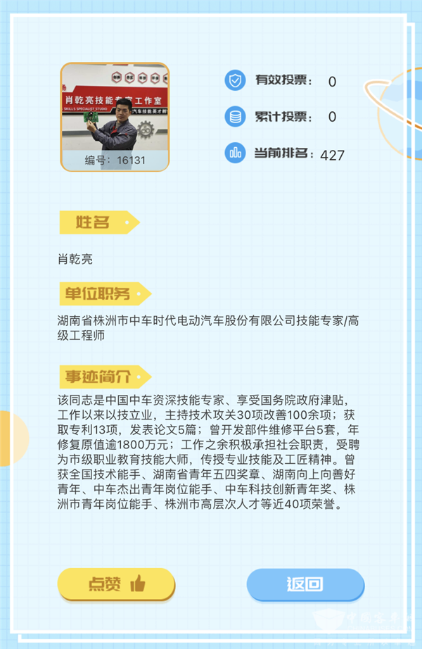中车电动肖乾亮再次入围“全国向上向善好青年” 快来为他点赞吧!