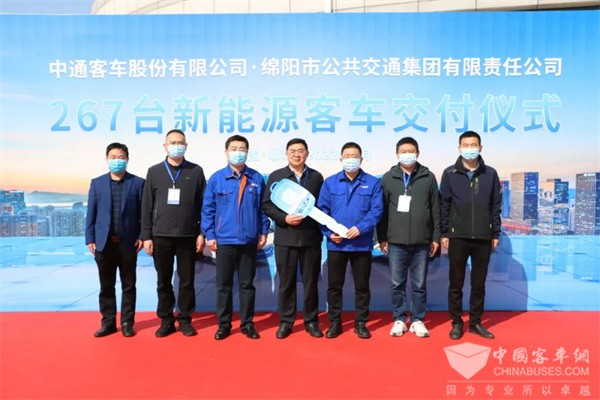 2022年4月1日,267辆中通新能源客车交付绵阳市公共交通集团公司(以下简称“绵阳公交”)仪式隆重举行,绵阳市民将迎来更加舒适、绿色、便捷的公共出行环境。