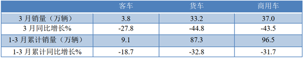 ●3月客车销量虽大降27.8,但仍领涨商用车大盘