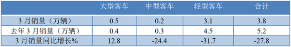 轻客降幅最大,大客成唯一增长车型!3月大中轻客车销量同比下降27.8%