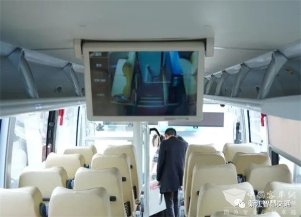 车内配置折叠式自动缩放电视机,这样乘客在休息的时间就可以轻松观看视频了。