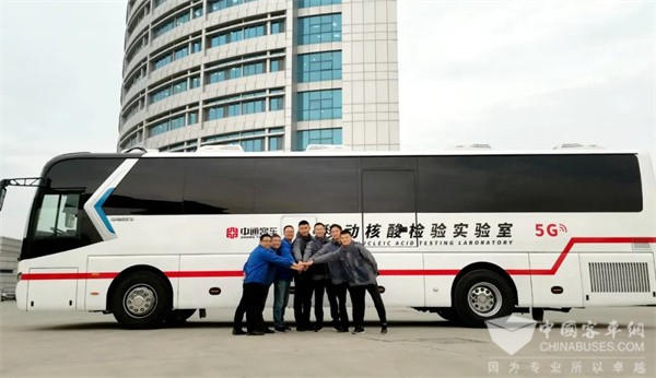 新冠疫情发生之初,中通客车技术团队连续加班30个昼夜,紧急开发出的移动天眼CT医疗车、核酸检测车,全面助力各地疫情防控。