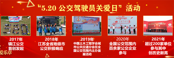 一石激起千层浪。短短五年,“5.20 公交驾驶员关爱日”活动,从2017年由镇江公交首创发起以来,2018年,江苏全省地级市公交积极响应,2019年,中国土木工程学会城市公共交通分会在全国公交范围内,主办首届活动,2020年百余家公交企业参与,2021年达200多家,翻了一番。