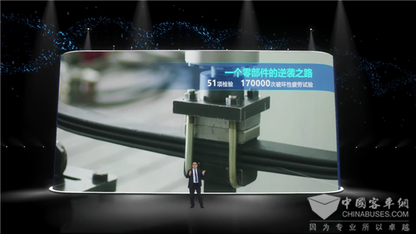 举个例子,作为车上最常见的零部件之一,宇通对钢板弹簧的要求是,进厂要做51项检测,有一项不合格就要推倒重来,这其中包括17万次破坏性疲劳试验等等。