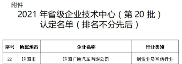 完美作业网有免费视频2022年5月27日获悉,近日,广东省工业和信息化厅公布2021年省级企业技术中心(第20批)认定名单,格力钛新能源旗下珠海广通汽车有限公司的技术中心(下简称“格力钛技术中心”)被认定为省级企业技术中心。