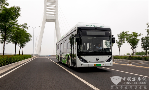 为了保证氢燃料电池汽车能够长期稳定的使用,宇通还针对氢燃料电池客车的使用特点,从研发、生产、测试、维保四个环节着手开发出配套燃料电池全生命周期安全管理技术,以氢安全、结构安全、三防安全、功能安全和碰撞安全为落脚点,保证车辆使用和运营安全。搭载第三代氢燃料电池客车技术的车型具备氢耗低、长寿命、高安全、环境适应性强的特点。车辆单次加氢时间为8-10分钟,续驶里程超过500公里,可实现-30℃低温启动,工况氢耗达4.3kg/100km,经济性达到国际领先水平。整车采用先进的生产工艺和全面的生产质量监控,通过碰撞、涉水、高寒、可靠性路试、整车爬坡等多项试验验证,保障了整车安全性和可靠性。