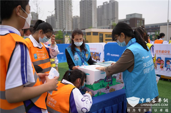 2022年5月25日,宇通&壹基金儿童交通安全公益行走进陕西西安,首站来到西安高新区第五初级中学,给同学们上了一堂别开生面的交通安全教育课。丰富有趣的游戏环节,让孩子们玩在其中,学在其中。“以前从来没有参加过这样的交通安全活动,这次的活动特别有意义,自己知道了什么是车辆盲区,也知道原来车辆在转弯时会产生非常危险的“内轮差”区域,收获非常多。”同学们表达着自己对公益行的喜爱。