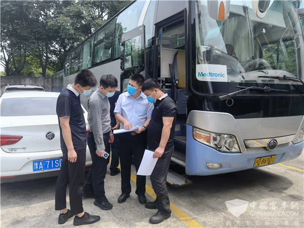 在车辆即将恢复运营之前,宇通客车服务人员又通过上门或打电话的方式拜访客户,对客户进行主动关怀,并提前协调专用服务车、服务站维修人员、工具、配件、防疫物资等,为上门开展服务活动做好充足准备,同时协助客户对车辆开展了消毒和安全检查,大大提升了客户满意度。