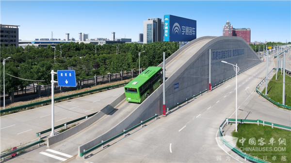 为做好无轨电车的试验、验证工作,也为了发展多样化城市客车新能源解决方案,一段2.5 公里长的无轨电车架空线网,在宇通厂区内架设而起。这段用作车辆调试的架空线网,保证了宇通生产的每一辆双源无轨电车都经过仔细调校,支撑双源无轨电车在网及脱网条件下的功能测试和性能验证工作。
