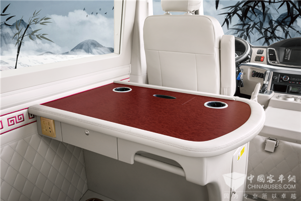 以满足不同的出行场景来说,宇通T7星宇版在每一个细节都做的十分到位。比如为了让乘客更加无忧地办公,车内配备首长椅+真皮座椅、豪华办公桌、秘书桌等,车载WiFi、220V电源、USB插口等等,堪称“移动的办公室”;比如为了乘客保证旅途中的舒适度,车内设置前后分区空调,乘客区、驾驶区温度可以独立控制,满足不同乘坐需求。