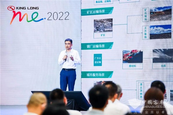 发布会现场,金龙客车工程研究院院长苏亮,深入分析新能源商用车的市场发展趋势与前景,详细介绍此次发布的新能源商用车产品。在双碳背景下,伴随着清洁能源的快速发展,新能源商用车已经成为当下的发展趋势,而卡车新能源市场前景广阔。金龙客车基于25年的新能源技术积累、专业研发实力和客制产品研发经验,以零碳智慧陆运为愿景规划,以实现合作伙伴的商业成功为导向,深化场景应用,推进联合创新,提供专业定制化的绿色运力全生命周期综合服务,从而与合作伙伴实现技术共生、商业共赢。本次成果展,金龙卡车板块首次全家族亮相,兼容纯电、氢燃料电池等多种动力系统,更有全新的换电模式,充分展现了金龙客车在新能源技术领域的深厚实力。