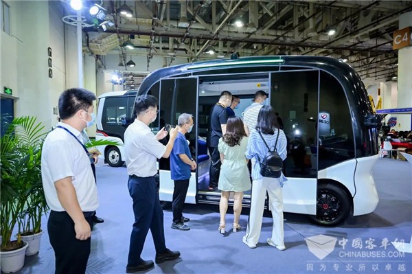 在HAPO旁的,是两辆金龙Robobus逍遥自动驾驶公交车,小巧灵动的车身应用多项自动驾驶领先技术,可实现开放道路的L4级自动驾驶,轻松应对公共交通场景及更复杂的城市道路路况,适用于BRT快速道路、城市微循环、社区公交、线路接驳和在线约巴等场景。同时,Robobus还能满足定制化的动态运营需求,通过云端精准分析交通状况、客流量,动态调度车辆的站点、时间和线路,满足乘客多元化、个性化的出行需求。