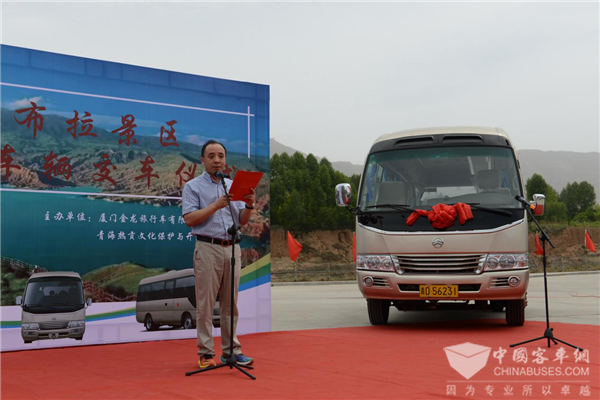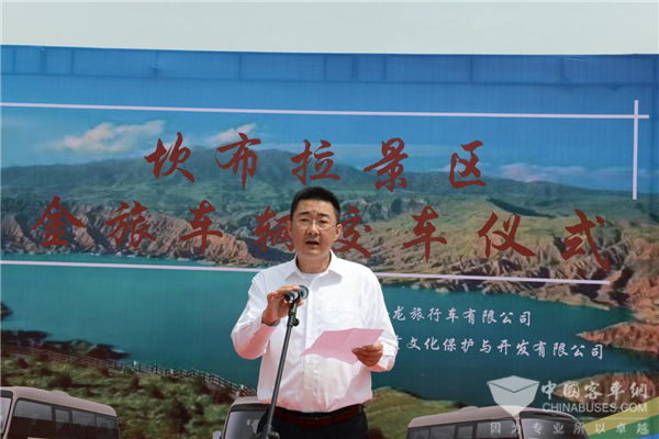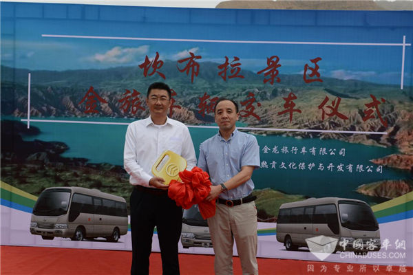 2022年7月8日,金旅客车与青海坎布拉景区的交车仪式在坎布拉景区举行。当天活动现场彩旗飘飘,两排整齐划一的新车车头挂着大红花,分外喜庆。青海黄南州政府相关部门领导、景区管委会领导、景区车辆运营公司青海热贡文化与开发有限公司董事长马亮和厦门金龙旅行车有限公司销售公司副总经理孙玉锋等相关领导和嘉宾出席了该仪式。