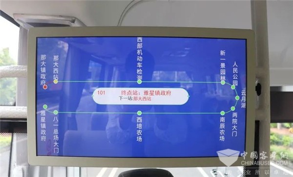 投放在101、102路上的主力车型是苏州金龙途悦,该款车型采用全承载车身结构、人机工程座椅,座位数由原来的17座增加到33座,还保证了座间距更宽阔、通过性更好,在提高乘坐舒适性的同时更适合乘客长距离出行。此外,为了方便乘客上下车,公交的报站提醒也从原有的单一广播报站器升级为广播和电子显示屏双重报站,防止乘客错过站点。