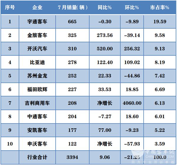 金旅第二 欧辉份额上升 TA暴增520% 7月大中型新能源客车销量同比增长7.09%