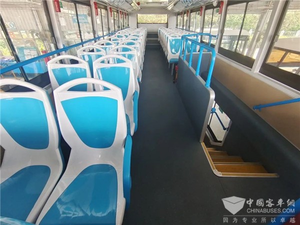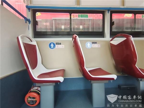 这款纯电动公交车俗称“气囊车”,即车轮处安装了“气囊”,驾驶员可以控制车身的升降和倾斜。比如,当车辆靠站时,可以让靠近站台一侧的气囊放气,使车辆朝站台倾斜,方便乘客上车;当遇到路面积水或者道路坑洼时,驾驶员可操作气囊,让车辆上升,平稳驶过,可减少市民乘车的颠簸感。车辆配有57个座椅,可承载75人,整车采用一级踏步方便市民上下车。每个座位边均配置2个USB充电插口,可以让市民在旅行中为手机充电。