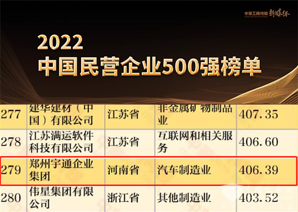 两天四次上榜!宇通荣登中国制造业企业500强和中国民营企业500强
