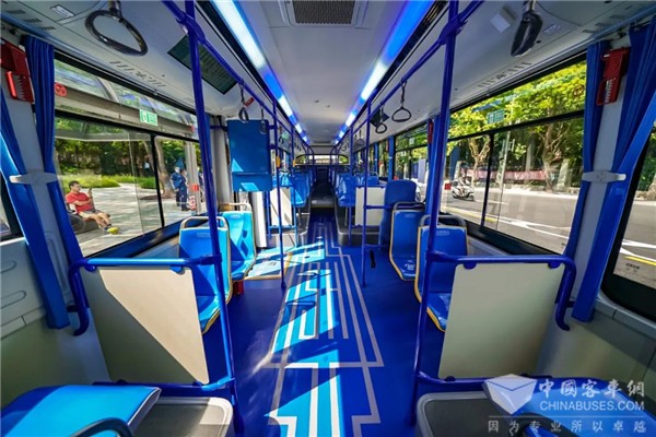 新车型虽然外型“复古”,但“内芯”却科技感十足,处处体现着人文关怀。新车型采用了新一代智能气动升降式集电杆,司机不用下车即可完成常规的升降辫操作,并配置了强劲的动力电池。在智能化方面,采用了360高清环视、前向制动预警和辅助、油门防误踩、右侧盲区监测、变道辅助和驾驶员监测等智能化设备,充分保证了车辆运营的安全。全车采用低地板无障碍布置,设置无障碍翻板和轮椅区,充分体现了对于老年和残障乘客的人性化关怀。