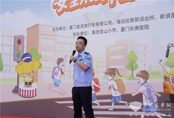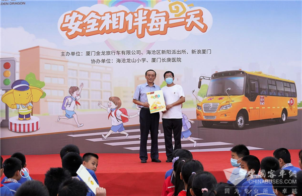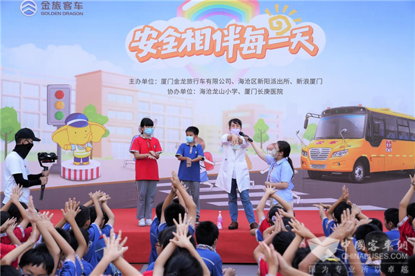 2022年9月22日下午,厦门金龙旅行车有限公司联合爱心单位海沧区新阳派出所、厦门长庚医院、新浪厦门,将一年一度的“安全相伴每一天”儿童安全知识公益活动送进厦门市海沧区龙山小学。活动现场通过生动有趣的安全知识体验、有奖互动问答,让同学们在九月开学季“安全第一课”中轻松愉快学习安全知识。