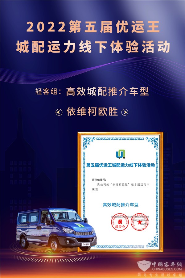 完美作业网有免费视频2022年9月26日获悉,近日,2022第五届优运王城配运力线下体验活动(以下简称“优运王”)在北京顺利举行。蓝牌轻客南京依维柯欧胜凭借着超强的通过性、操控性、超大的装载空间和超高颜值,一举荣获优运王“高效城配推介车型”,成为众多城配物流用户的首选车型。