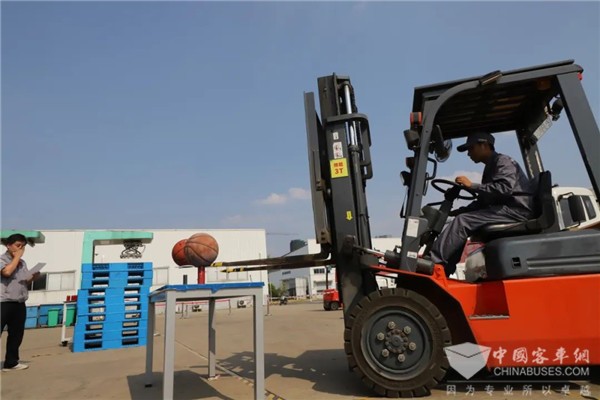 叉车对于叉运大件物品是轻而易举的事情,但叉起叠放有饮料的托盘,在钢管上取篮球,绝非易事。而我们今天的叉车竞赛选手向我们证明了“世上无难事只怕有心人”。