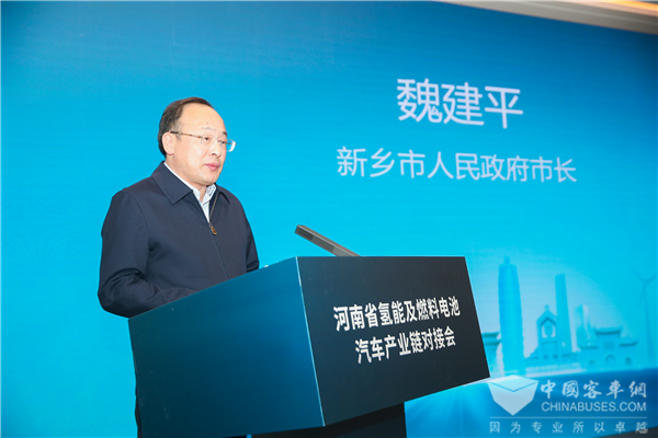 新乡市市长魏建平致辞发言中指出,在2016年国家首次提出氢能发展路线后,新乡市即将氢能作为重点产业,从技术、人才、基金等方面积极谋划布局。着力构建具有显著技术优势的氢能产业研发基地。先后依托同济大学和河南电池研究院,组建河南省首家氢能与燃料电池工程研究中心;联合哈尔滨工业大学组建河南中氢动力电池研究院;引进清华大学技术团队,建立清华博士后工作站,搭建燃料电池发动机系统河南省重点实验室等,倾力打造氢能技术创新高地。