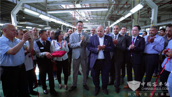 剪彩当天,工人们齐聚一堂,欢呼庆祝,一句句“哈比比”此起彼伏。“这个项目引入了金旅先进的客车生产技术,给当地带来大量就业机会,在项目的建设过程中,我们与当地工人建立了亲密的友谊,他们用‘哈比比’(阿拉伯语‘亲爱的’意思)称呼我们,我们听了深感自豪。”安敏说。
