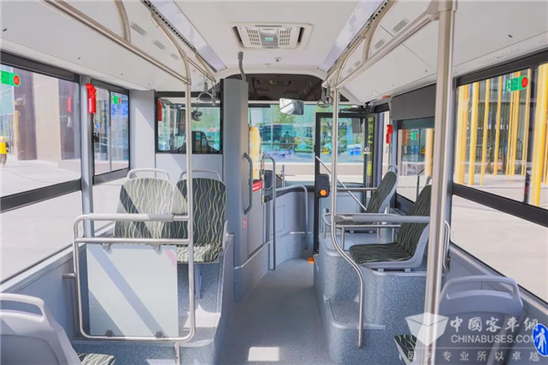 目前我国正在大力推行适老化交通出行服务,能够更安全、更舒适、更便捷满足适老化出行的低入口、低地板公交产品将逐渐成为市场主流。面对这一趋势,宇光E8 MAX在设计时同步考虑了老年人的舒适出行体验,采用同级最低一级踏步(340mm)+站立区全平地板,方便老幼病残群体上下车,实现无障碍通行;超越同级宽体车身2550mm纵享宽畅大通道1490mm,可令轮椅和童车畅行无忧。