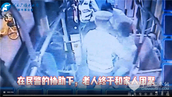 在热心的任师傅和乘客的帮助下,司机师傅在公交站点将老人交给早在站台等候的民警,看到老人跟随民警离开才放下心来,再次返回驾驶位投入运营工作之中。