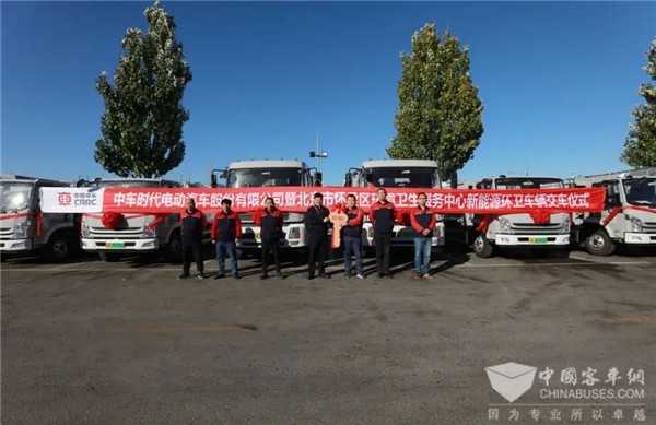 2022年11月,中车电动向北京怀柔区交付批量纯电动压缩式垃圾车,以领先的科技产品助力怀柔区市政环卫工作高质量发展,为守护北京绿水青山贡献力量。