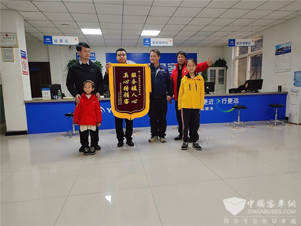 各大中心站不仅是直服战略的重要节点,也是宇通维修保养实力的集中体现。面对国庆节前出现大顶事故的客户车辆,宇通西安中心站为保障用户国庆节期间正常运营,顶住大量零件需要手工定制的压力,升级协调压缩配件周期,每天加班加点到晚上11点全情投入维修工作,在不足一周的紧张时间内将车辆修复如初并清扫干净可直接投入使用,给了来提车的客户一个大大的惊喜,在车辆运营回来后,10月25号,客户带着全家人拿着锦旗来到西安中心站,两个小孩唱着“听我说,谢谢你,因为有你、温暖了四季…”的歌谣,温暖了整个西安站。