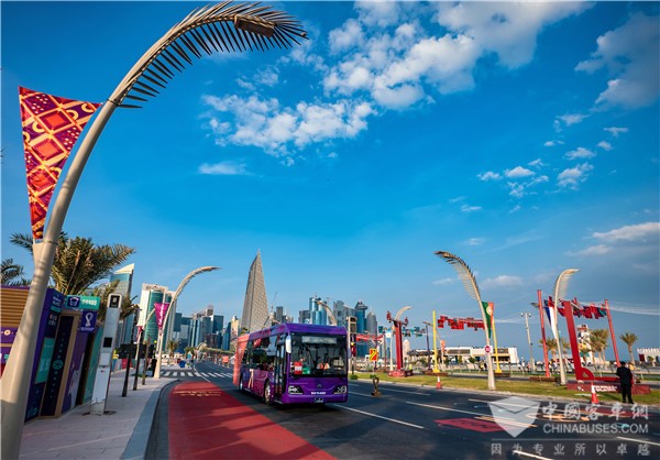 为做好大赛服务工作,卡塔尔全力升级交通基础设施,修建了以公路、地铁、轻轨为主的公交系统,并且提升了公交系统的使用效率。世界杯期间,1500辆左右的中国宇通客车为赛事提供服务保障,其中包括888辆纯电动客车。为确保服务保障任务顺利进行,针对多哈复杂的公共交通出行需求,宇通提出了“干线公交+支线微循环+长续航客旅团”的纯电动综合解决方案,更好的服务赛事相关的7000多名工作人员、志愿者以及超过140万球迷,为从全世界聚集而来的游客提供更全面、更优质的出行体验。