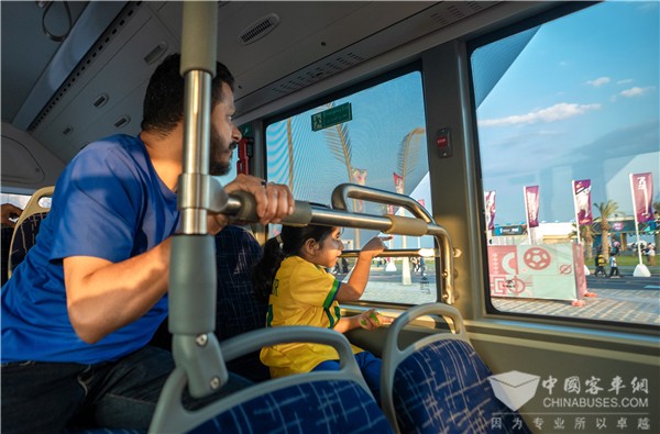 为应对卡塔尔温度高、风沙大的环境,宇通针对卡塔尔运营车辆进行了定制化开发,实现车辆高度智能化、人性化,还配备了行业最新、最安全的电池技术,以及行业独创的电机泥沙防护结构,不惧高温和风沙,实现安全自由驰骋。该批车辆收获当地民众花式点赞:“这批来自中国的公交车和我们平时乘坐的公交不一样,很漂亮上档次,开起来没有噪音,甚至有很多人对着车自拍,体验真的很棒!”