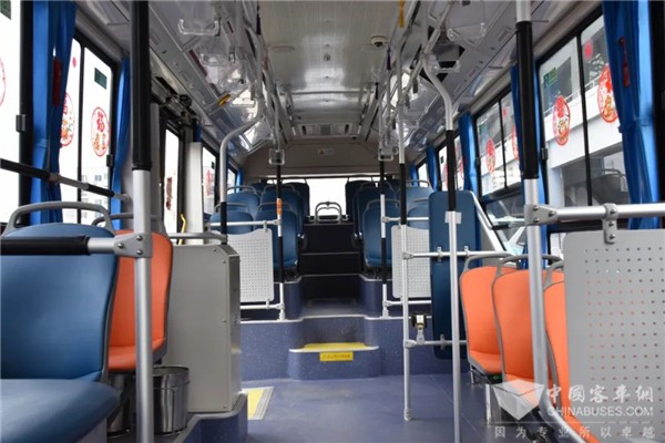 座椅遵循人体仿生学设计,配备USB接口,设立特需人员专座,驾驶区更是采用气囊减震司机座椅,结合人机要求进行按键设计。
