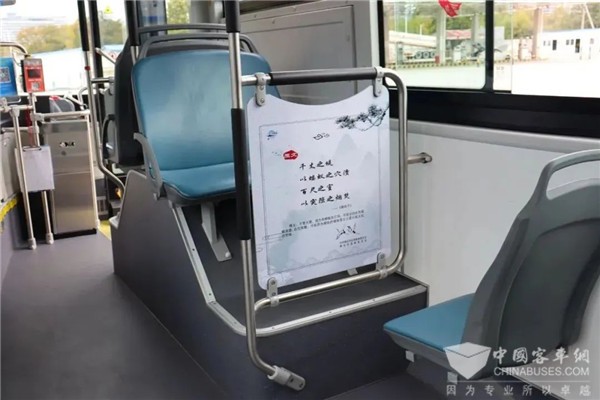 整车车身,以彰显忠诚的红色为主基调,蓬莱阁、烟台山灯塔等地标建筑图案活灵活现,使“传承烟台廉脉 弘扬时代新风”等主题标语醒目又不失单调。走进车厢,古韵清风扑面而来,“出淤泥而不染,濯清涟而不妖”等古诗词格外引人注目,点缀的清莲、苍松、仙鹤等图案栩栩如生,如清风徐来,让廉洁入心。