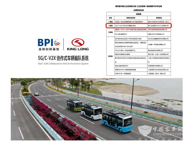 2022年12月23日,金砖创新基地的金龙智慧交通金砖示范项目——5G/C-V2X协作式车辆编队系统在第四届中国工业互联网大赛智能网联汽车专业赛创新组中荣获亚军。厦门金龙联合汽车工业有限公司(简称金龙客车)的5G/C-V2X协作式车辆编队系统从全国348个智能网联创新项目中脱颖而出,荣获第二名的佳绩。