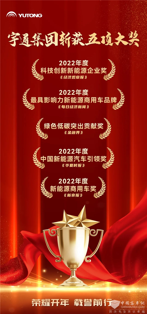 接连斩获五项新能源领域大奖,宇通集团载誉开启2023!