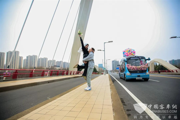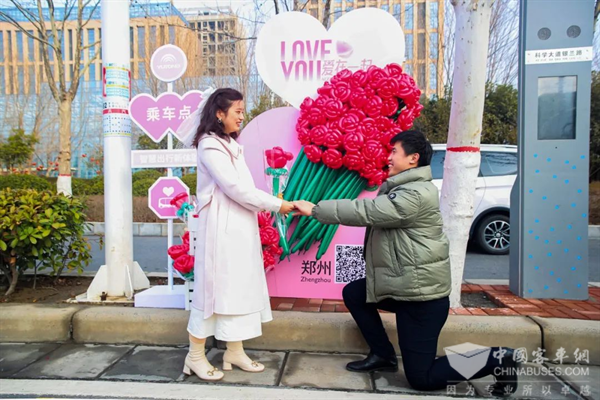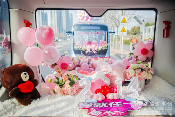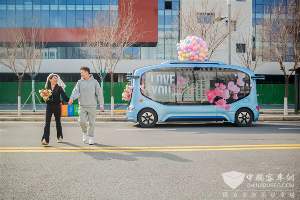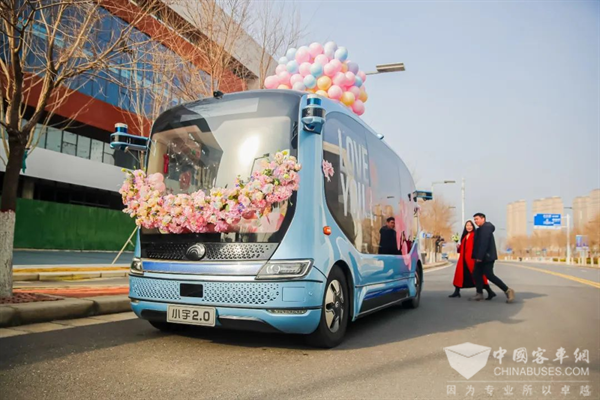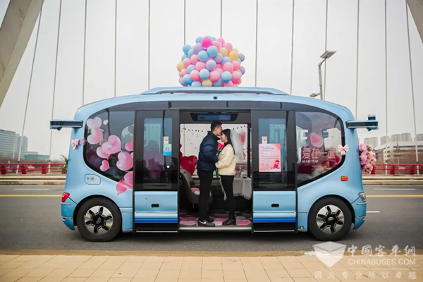 宇通智能驾驶巴士小宇2.0变身情人节“婚车”,打造浪漫城市新名片