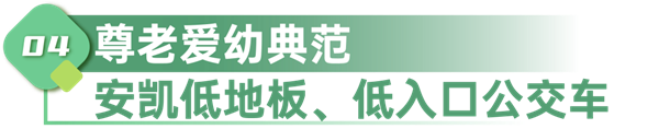 针对老年人出行,后门选用塞拉门,门间距更大,下车更方便,车辆还配备无障碍导板和无障碍轮椅专用空间,关爱特殊乘客。为进一步便利特殊群体出行,安凯客车从上车、行驶中、下车全过程出发,优化低地板及低入口车型的设计,只为全民出行体验更美好。