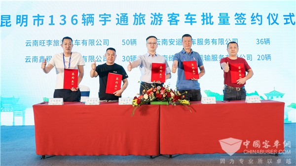 活动现场,昆明市136辆宇通旅游客车批量订单成功签约,这体现了云南旅游市场对宇通品牌和服务的充分认可,必将加速推动云南旅游出行业的全面爆发。