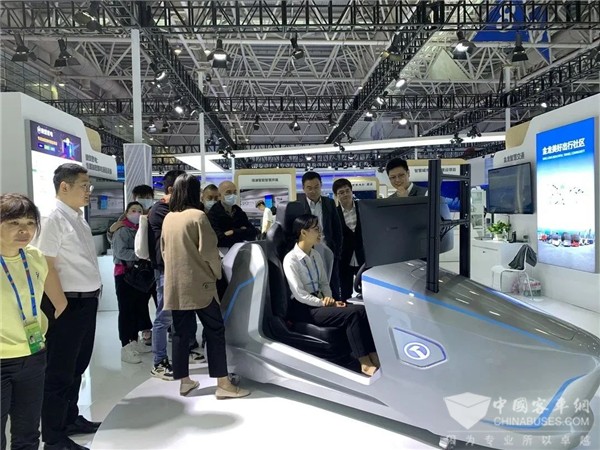 峰会现场,8号馆数字福建展区集中性展出了福建省在智慧民政、智慧出行、乡村振兴等方面的成果,舞台正中央金龙客车推出的金龙智慧远程驾驶舱,引来众多观众体验。驾驶台外部主体由显示屏、脚踏板、方向盘、登录识别模块和安全模块等组成,体验者坐在驾驶舱里,对着眼前的屏幕,就能操纵在展馆外行驶的金龙GAPA自动驾驶安防车。